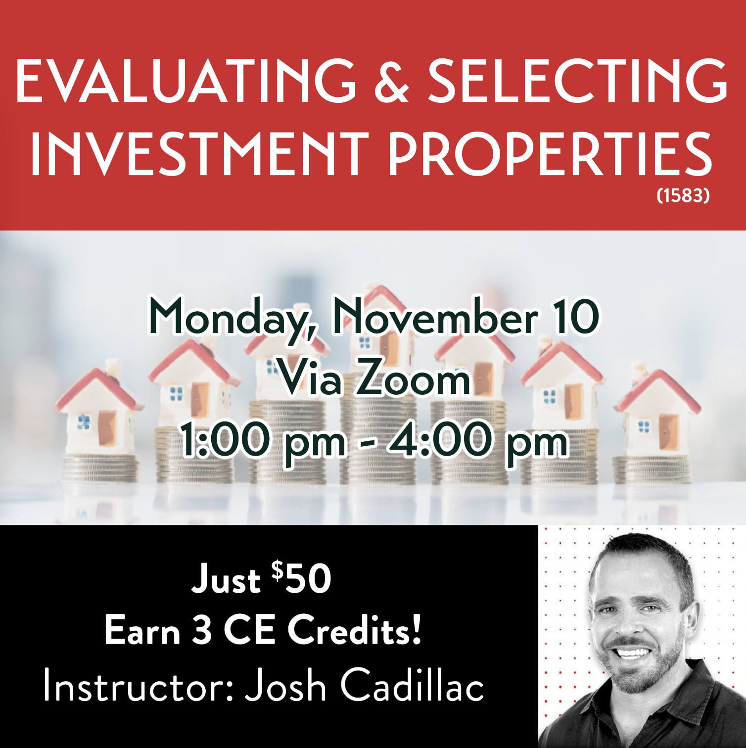 For ONLY $50, join us via Zoom on November 10th for a can't-miss training: GRI Evaluating & Selecting Investment Properties (1583) 3 CE Credits with Josh Cadillac! Dive into the world of rental property investments with this comprehensive course designed to give you a clear understanding of the key differences between Short-Term Rentals (STRs) and Long-Term Rentals (LTRs). You’ll learn how to explain essential concepts like ‘The Stack,’ Cap Rate, and the financial dynamics of STRs and LTRs, including costs, fees, and depreciation. This course will also cover practical skills like calculating the Rate of Return and ROI for both types of properties and making projections for future daily rates for STRs. Additionally, you’ll gain insights into the typical customer for each rental type, and understand the risks, frustrations, and potential benefits of both strategies. By the end of the course, you’ll be equipped to guide clients in choosing the right investment path and maximizing their rental property returns!